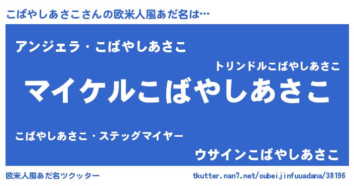 | 肩書あだ名 | 『こばやしあさこ御曹司』 |