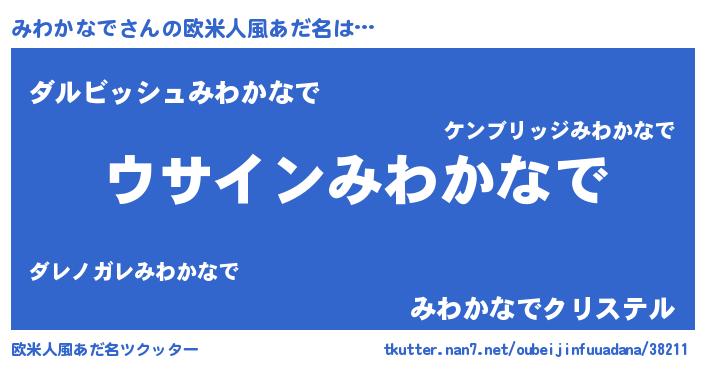 | 男性向けラノベタイトル風あだ名 | 『みわかなでの嫁は女の子じゃないと思った?』 |