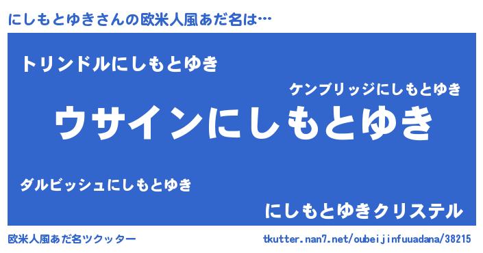 | 男性向けラノベタイトル風あだ名 | 『にしもとゆきの嫁は女の子じゃないと思った?』 |