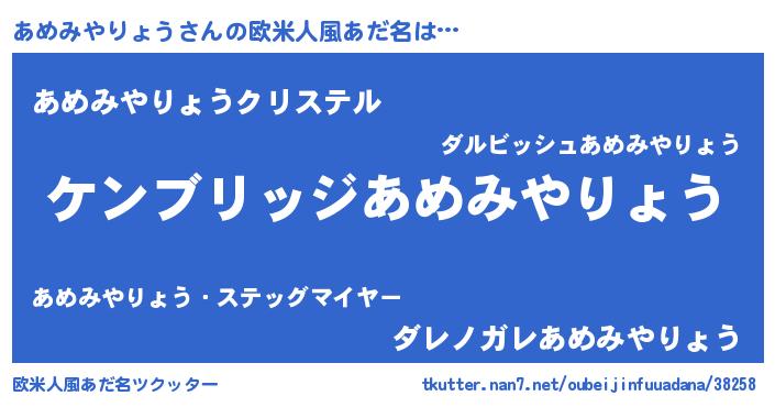 | 意味不明あだ名 | 『自称あめみやりょう』 |