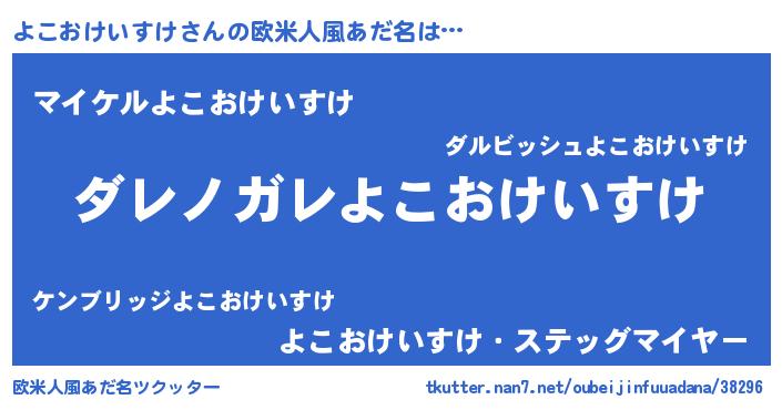 | 男性向けラノベタイトル風あだ名 | 『魔弾の王とよこおけいすけ』 |