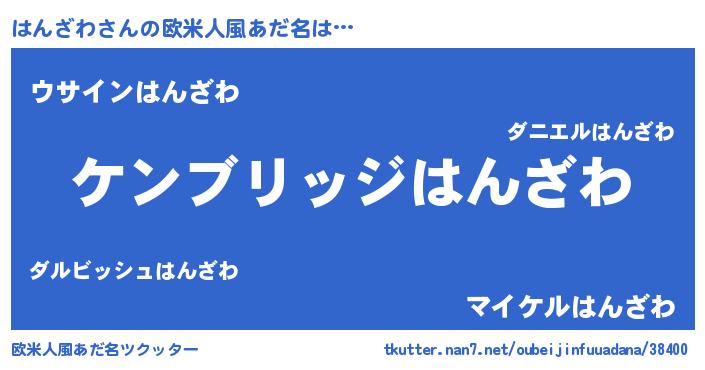 | 男性向けラノベタイトル風あだ名 | 『Re:はんざわから始める異世界生活』 |