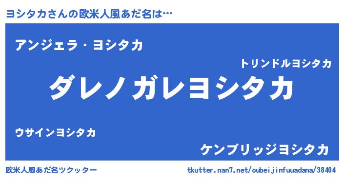 | 男性向けラノベタイトル風あだ名 | 『魔弾の王とヨシタカ』 |
