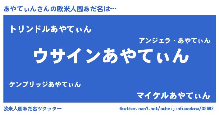 | 男性向けラノベタイトル風あだ名 | 『ダンジョンにあやてぃんを求めるのは間違っているだろうか』 |