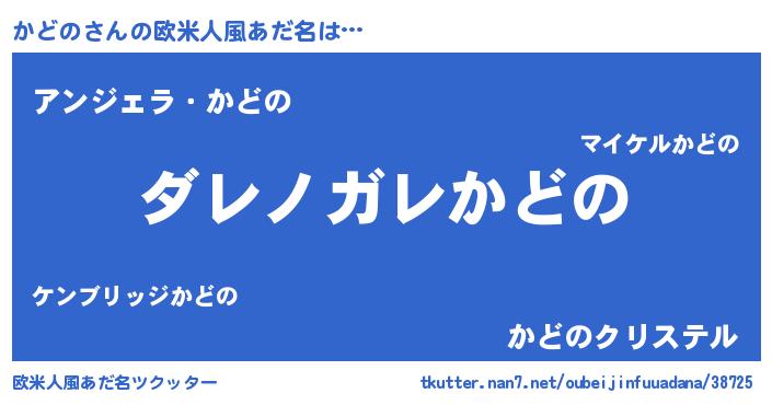 | 男性向けラノベタイトル風あだ名 | 『魔弾の王とかどの』『かどのの憂鬱』 |