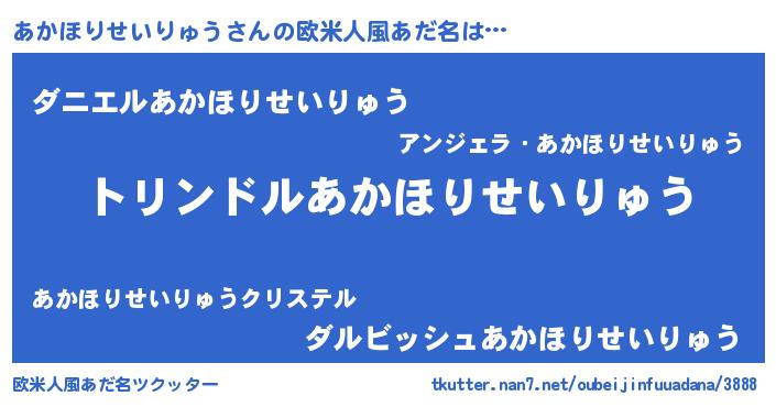| 男性向けラノベタイトル風あだ名 | 『あかほりせいりゅう~年齢イコール彼女いない歴の魔法使い~』 |