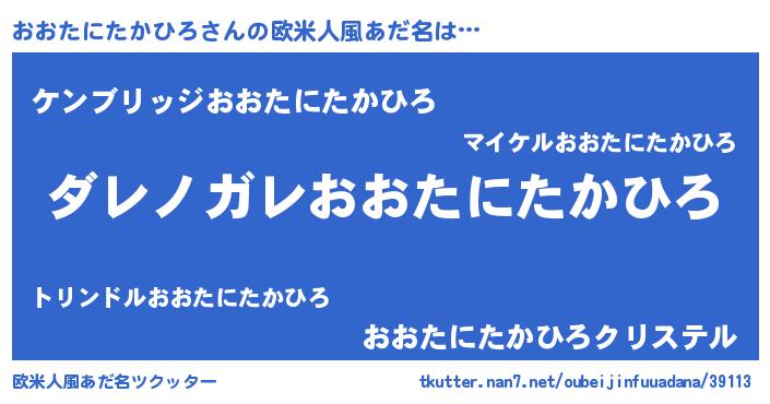 | 男性向けラノベタイトル風あだ名 | 『この素晴らしい世界におおたにたかひろを!』 |