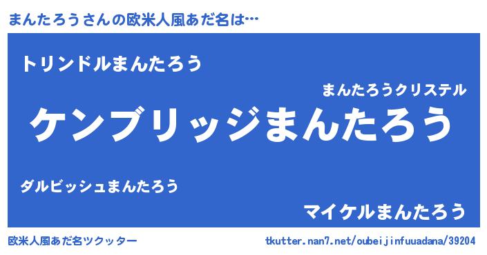 | 男性向けラノベタイトル風あだ名 | 『Re:まんたろうから始める異世界生活』 |