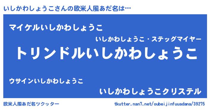 | 男性向けラノベタイトル風あだ名 | 『いしかわしょうこ~年齢イコール彼女いない歴の魔法使い~』 |