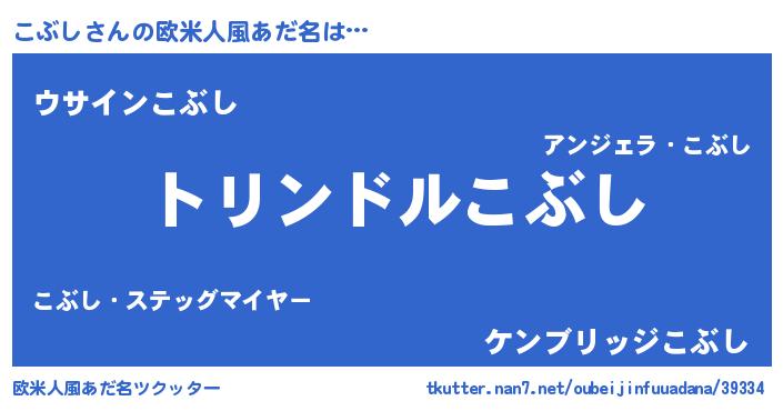 | 男性向けラノベタイトル風あだ名 | 『こぶし~年齢イコール彼女いない歴の魔法使い~』 |