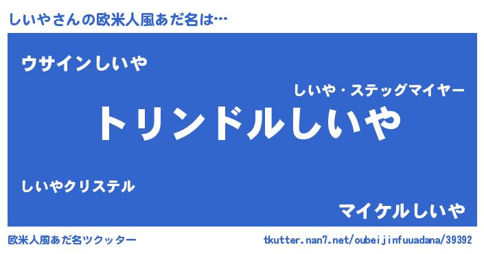 | 男性向けラノベタイトル風あだ名 | 『しいや~年齢イコール彼女いない歴の魔法使い~』 |
