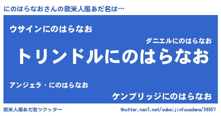 | 男性向けラノベタイトル風あだ名 | 『転生したらにのはらなおだった件』 |