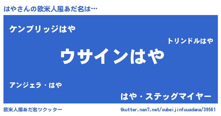 | 男性向けラノベタイトル風あだ名 | 『はやの嫁は女の子じゃないと思った?』 |