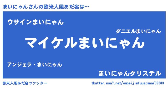 | 男性向けラノベタイトル風あだ名 | 『まいにゃんの憂鬱』 |