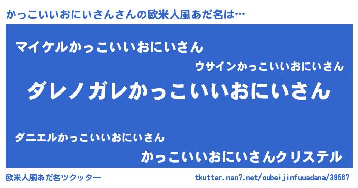 | 男性向けラノベタイトル風あだ名 | 『この素晴らしい世界にかっこいいおにいさんを!』 |