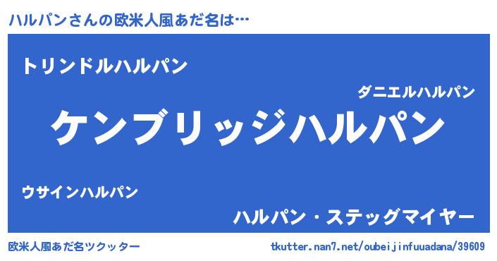 | 意味不明あだ名 | 『自称ハルパン』『エリンギ科ハルパン属』 |