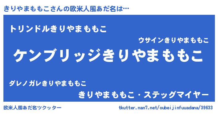 | 男性向けラノベタイトル風あだ名 | 『Re:きりやまももこから始める異世界生活』 |