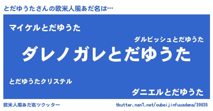 | 意味不明あだ名 | 『住所不定無職とだゆうた(77歳)』 |