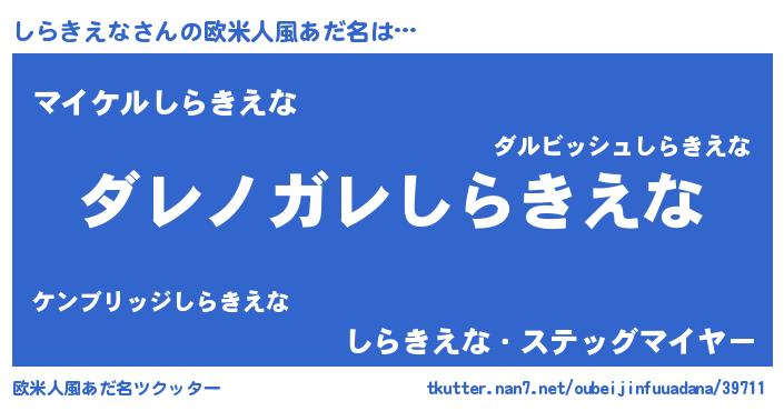 | 男性向けラノベタイトル風あだ名 | 『この素晴らしい世界にしらきえなを!』 |