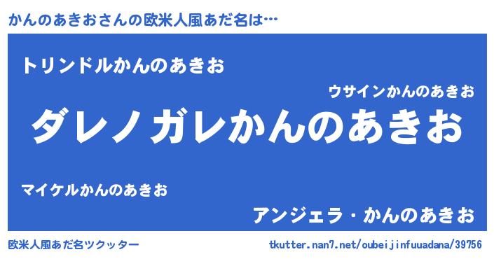 | 男性向けラノベタイトル風あだ名 | 『魔弾の王とかんのあきお』 |