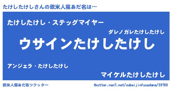 | 男性向けラノベタイトル風あだ名 | 『ダンジョンにたけしたけしを求めるのは間違っているだろうか』 |