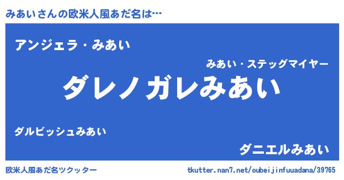 | ヘコむあだ名 | 『みあい(笑)』『みあにゅー』 |