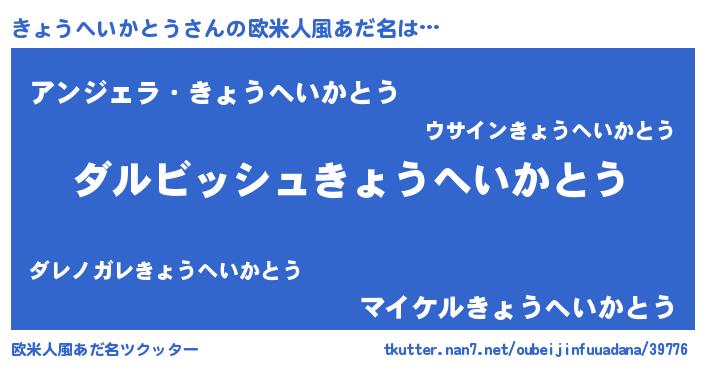 | 意味不明あだ名 | 『永久保存きょうへいかとう』 |