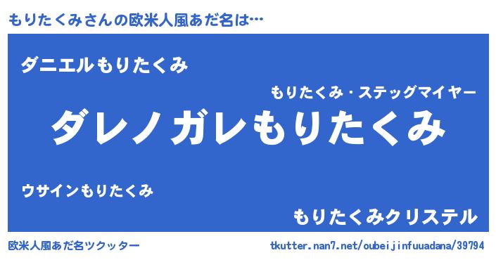 | 意味不明あだ名 | 『住所不定無職もりたくみ(91歳)』 |