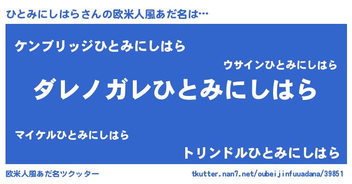 | 胡散臭い通販商品みたいなあだ名 | 『あなたにだけ特別に提供する限定10本のレアな日本酒…その名も「ひとみにしはら」』 |