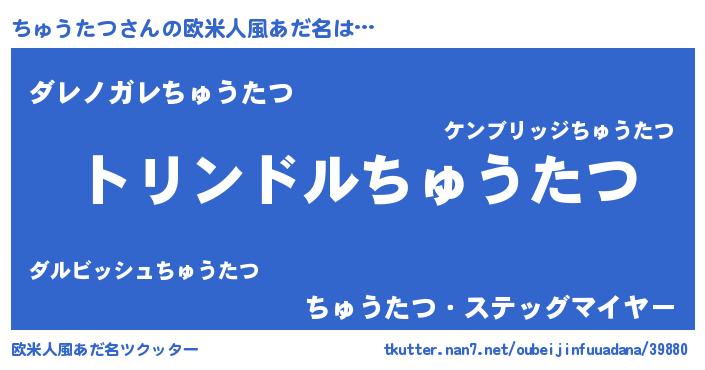 | 男性向けラノベタイトル風あだ名 | 『転生したらちゅうたつだった件』 |