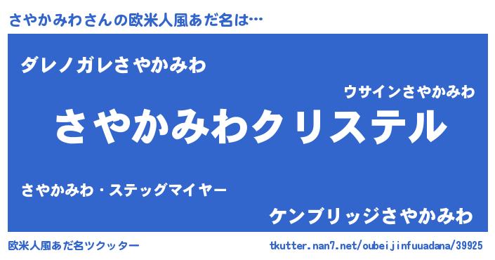 | ファンタジー風あだ名 | 『エターナルサヤカミワー』『ゼサヤトゥ』 |