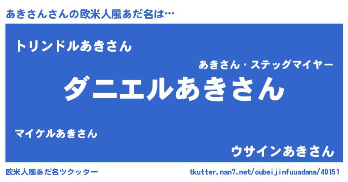 | ピコ太郎風あだ名 | 『アア太郎』『アキ五郎』『アコ六郎』 |