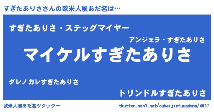 | 男性向けラノベタイトル風あだ名 | 『スギタアリサアートオンライン』 |