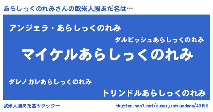 | 男性向けラノベタイトル風あだ名 | 『アラシックノレミアートオンライン』 |