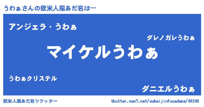 | ヒーロー風カッコイイあだ名 | 『スーパーウワァ』『天空の使者うわぁ』 |