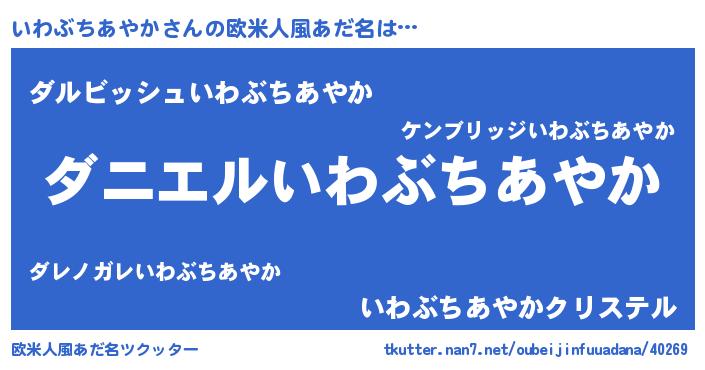 | 男性向けラノベタイトル風あだ名 | 『ノーゲーム・ノーイワブチアヤカ』 |