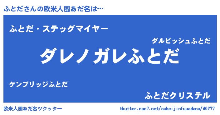 | 男性向けラノベタイトル風あだ名 | 『魔弾の王とふとだ』 |