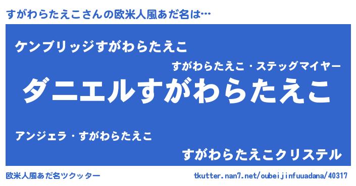 | ヒーロー風カッコイイあだ名 | 『慈愛の使者すがわらたえこ』 |