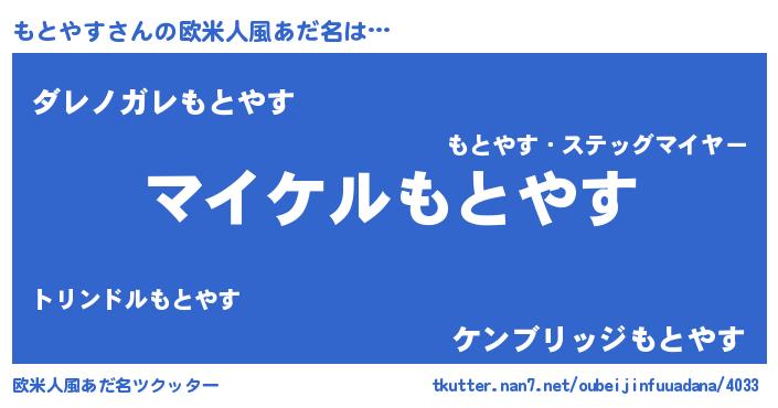 | 男性向けラノベタイトル風あだ名 | 『もとやすの憂鬱』『魔弾の王ともとやす』 |