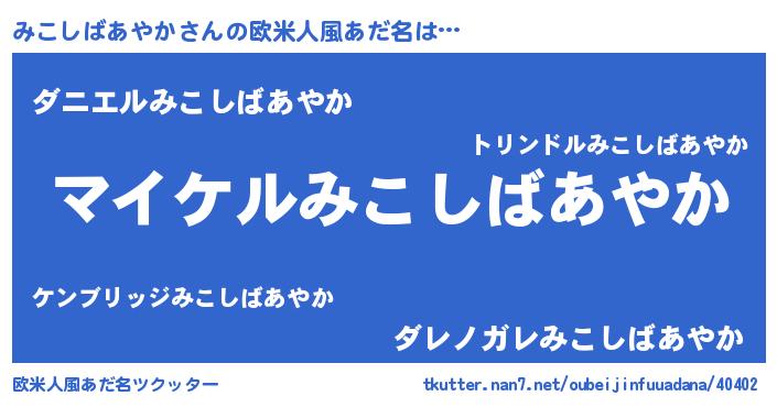 | 男性向けラノベタイトル風あだ名 | 『みこしばあやかの憂鬱』 |