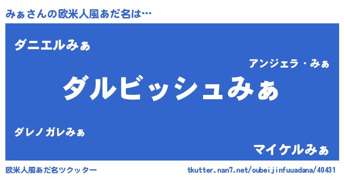 | 胡散臭い通販商品みたいなあだ名 | 『来世でも幸せになれる健康食品…その名も「みぁ」』 |