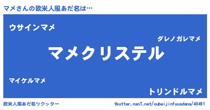 | 女子向けラノベタイトル風あだ名 | 『マメ伯爵の花嫁』『マメは平凡を望む』 |