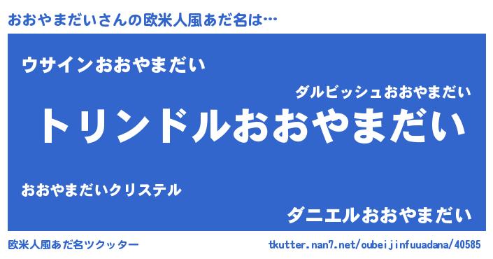 | 男性向けラノベタイトル風あだ名 | 『おおやまだい~年齢イコール彼女いない歴の魔法使い~』 |