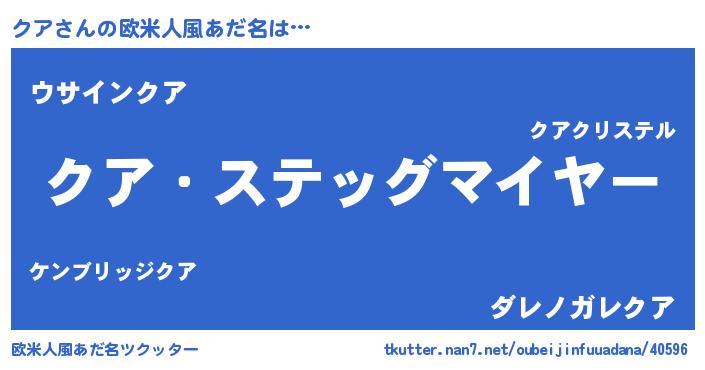 | 男性向けラノベタイトル風あだ名 | 『緋弾のクア』『魔弾の王とクア』 |
