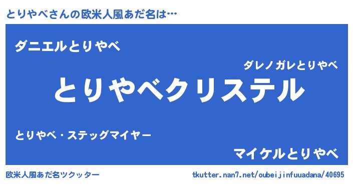 | 意味不明あだ名 | 『とりやべフォーエバー』 |