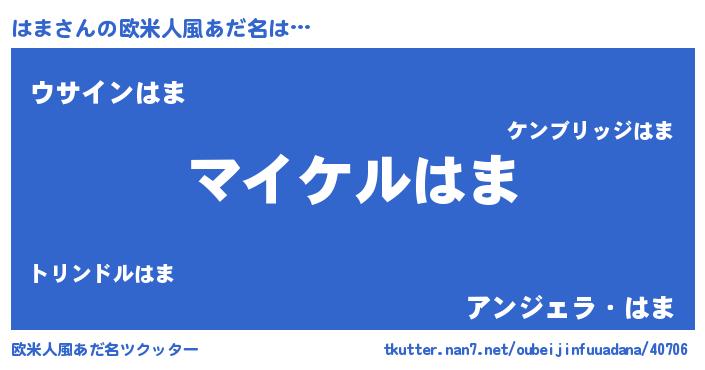 | 男性向けラノベタイトル風あだ名 | 『はまの憂鬱』『はたらくはまさま!』 |
