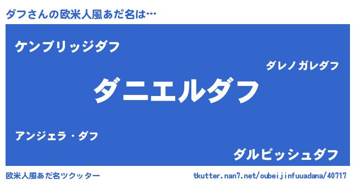 | ヒーロー風カッコイイあだ名 | 『正義の使者ダフ』『サイバー戦士ダフ』 |
