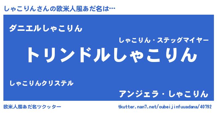 | 男性向けラノベタイトル風あだ名 | 『転生したらしゃこりんだった件』 |