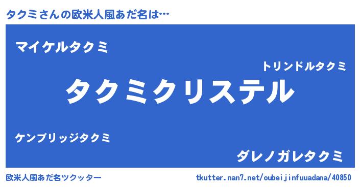 | ファンタジー風あだ名 | 『エターナルタクミー』『タクフェル』 |
