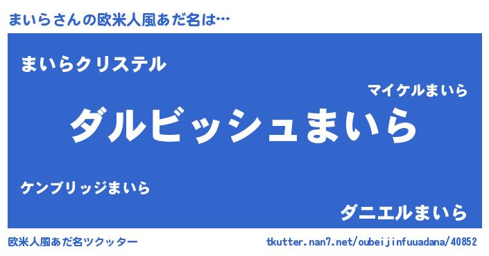 | 意味不明あだ名 | 『永久保存まいら』『まいらフォーエバー』 |